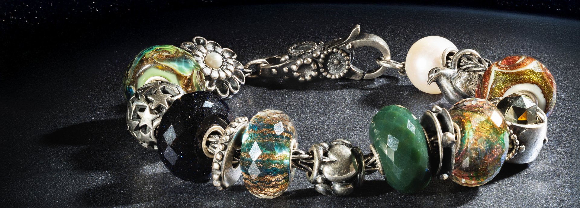Гранёные стеклянные бусины из зимней коллекции сияют мягким светом и наполнены глубоким смыслом. Каждая из них отражает эмоцию — заботу, смелость, спокойствие или ясность — и приглашает вас к спокойному размышлению.